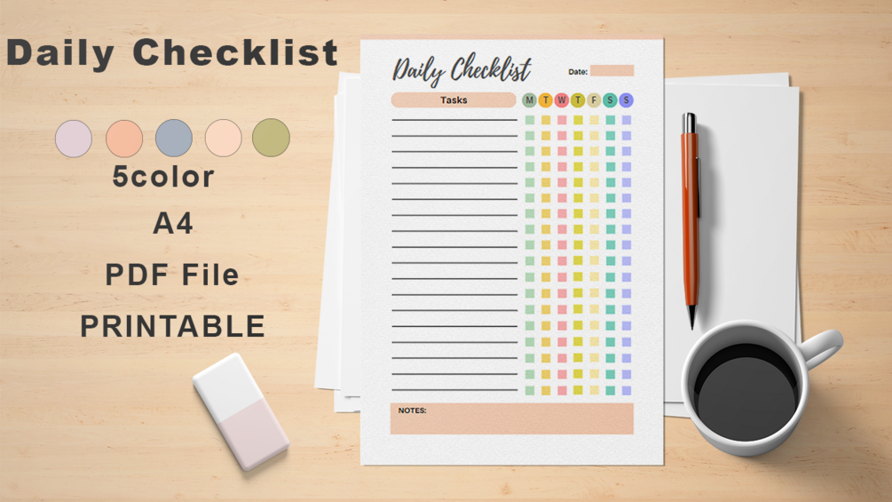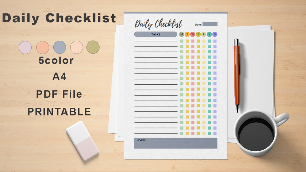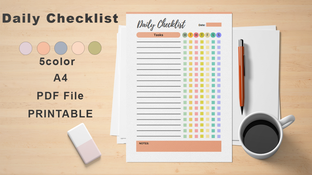 - Print Ready A4 Daily checklist (5 Different colors) [PDF] non-editable PDF